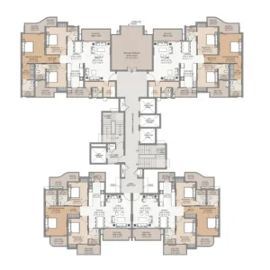 cluster of 4 flats per floor (2nos. 3 bhk & 2nos. 4 bhk)