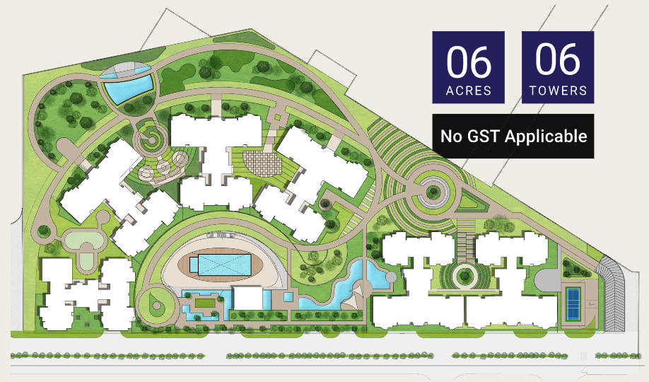 Indoor Games Room | Toddlers’ Play Area | Basketball Court | Water Feature Badminton Court | Banquet Hall | Yoga, Aerobics | Senior Citizen Garden Swimming Pool | Deck Seating | Jogging Track & Gymnasium | Topiary Garden | Chip and Putting Greens | Lawn